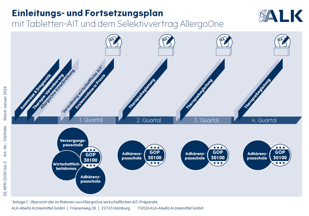 Den im Rahmen der wirtschaftlichen Versorgung geschlossenen Rabattverträgen ist auch ALK beigetreten. Somit kann unter Berücksichtigung der Teilnahmevoraussetzungen bei der Verordnung von GRAZAX®, ITULAZAX® und ACARIZAX® die besondere Förderung in Anspruch genommen und extrabudgetär abgerechnet werden.